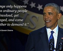 Popular but politically humbled, President Barack Obama said goodbye to the nation Tuesday night, declaring during his farewell address that he hasn't abandoned his vision of progressive change but warning that it now comes with a new set of caveats.