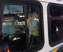 The MBTA says someone smashed the window of a bus during an apparent road rage incident.