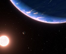 Astronomers using the Hubble Space Telescope have detected water molecules in the atmosphere of a small, blazing-hot exoplanet 97 light-years from Earth.