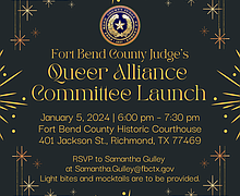 The Office of Fort Bend County Judge KP George will announce the official launch of the Queer Committee, a new initiative aimed at promoting inclusivity, providing resources, dispelling myths, and showcasing the economic contributions of the Queer community in Fort …