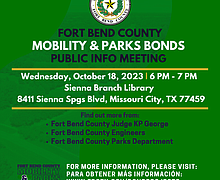 Fort Bend County Judge KP George will host a series of community meetings to inform residents about the 2023 Fort Bend County Bonds that will appear on the November 7 ballot. The bond propositions consist of 98 mobility projects for …
