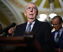 Senate Minority Leader Mitch McConnell told reporters that he’s “fine,” after freezing during a news conference on Wednesday.