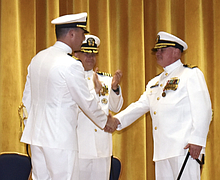 Cmdr. Robert Lane turned over command of the Los Angeles-class fast-attack submarine USS Greeneville (SSN 772) to Cmdr. Chad Tella in a traditional change of command ceremony held Friday, June 16, at Portsmouth Naval Shipyard (PNSY) in Kittery, Maine.