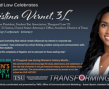 Thurgood Marshall Law kicks off "WOMEN'S HISTORY MONTH" honoring third-year law student and Class of '23 President, Ms. Christina Vernet!