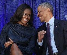Barack and Michelle Obama make first joint return to the White House for unveiling of official portraits