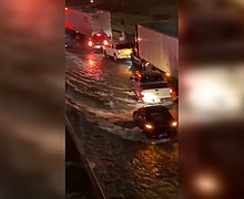 Floodwaters overtake cars and trucks in drought-plagued Dallas as summer's worth of rain falls in a day