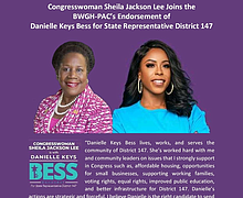 US Congresswoman Sheila Jackson Lee has officially endorsed Danielle Keys Bess for Texas State Representative in District 147.