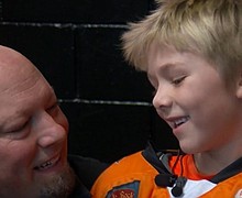A young Farmington hockey player received a special sendoff Sunday morning as he faces off against a tough opponent.