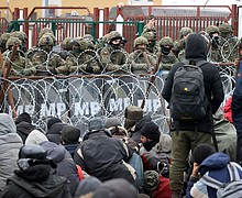 Violence erupted at the Poland-Belarus border on Tuesday, as migrants desperate to cross into the European Union threw stones at Polish border guards who responded with water cannon and tear gas.
