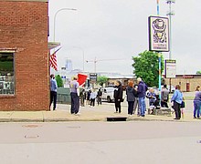 Demonstrators gather outside Nashville hat store that offered 'not vaccinated' yellow Star of David badgesCn