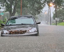 Water rescues were underway Tuesday morning in Louisiana's capital region after torrential rain that started a day earlier caused dangerous flash flooding in parts of that state and southeastern Texas.