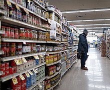 In August 2024, then-candidate former President Donald Trump delivered a press conference surrounded by packaged foods, meats, produce, condiments, milk and eggs.