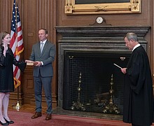 Associate Justice Amy Coney Barrett sworn in and greeted with a request to recuse herself in an election case