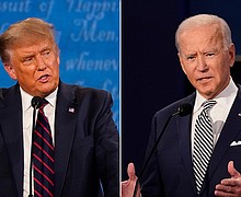 Fact check: Trump campaign runs Facebook ads featuring fake image of Biden wearing earpiece