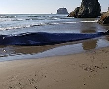 Stranded 38-foot whale dies on Oregon coast