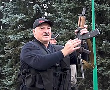Belarusian President Alexander Lukashenko responded to huge anti-government protests and calls for his resignation by posting video of himself flying over Minsk in riot gear, with a rifle hanging from his shoulder.