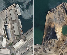 Satellite images, obtained by CNN from Planet Labs Inc., show a massive crater at the site of Tuesday's explosion in Beirut's port.