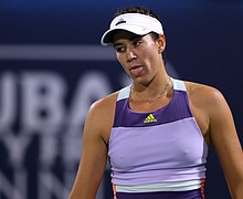 Garbine Muguruza lost her racket and her US Open match Thursday against a tricky foe who returned to the circuit this week after becoming a mom.