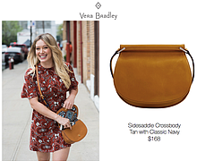 Hilary Duff spotted carrying the Vera Bradley Sidesaddle Crossbody in New York. The style retails for $168 and is currently available on www.VeraBradley.com.
