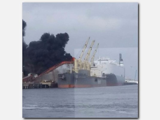 Port Arthur firefighters are still investigating what caused a conveyer belt fire near a cargo ship.
