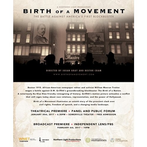 Birth of a Movement, a documentary about African-American newspaper editor William Monroe Trotter‘s 1915 battle against America’s first blockbuster movie – D.W. Griffith‘s infamous The Birth of a Nation – will have its broadcast premiere Feb 6, 2017 on Independent Lens/PBS.