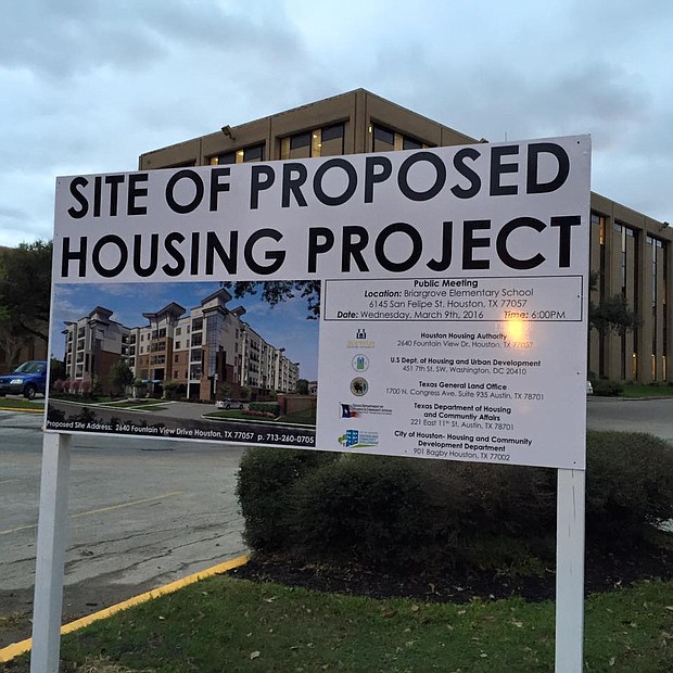 Housing and Urban Development letter of findings regarding the Houston Housing Authority project on Fountain View in the Galleria area. He has a strong belief that all communities can provide for children whether there are wealthy or economically challenged.