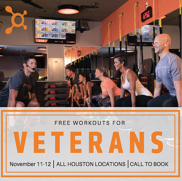 Veterans Day is Saturday, November 11, and to show appreciation for our country’s brave service members, the Orangetheory Fitness studios in Houston will offer veterans a FREE workout any time from Saturday, November 11 until Sunday, November 12.
