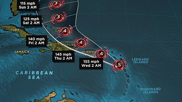 If Maria's track holds, Puerto Rico will take a direct hit. That'll make Maria the first Category 4 or 5 hurricane to make landfall in Puerto Rico in 85 years.
