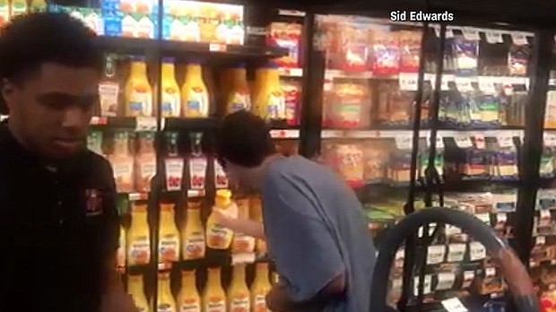 A grocery store employee is being lauded for helping a teen with autism stock shelves in a fridge.