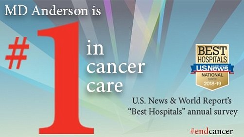 The University of Texas MD Anderson Cancer Center again has been ranked No. 1 for cancer care by U.S. News & World Report’s annual “Best Hospitals” survey. Since the survey began in 1990, MD Anderson has been named one of the top two cancer hospitals, and it has ranked first 14 times in the last 17 years.