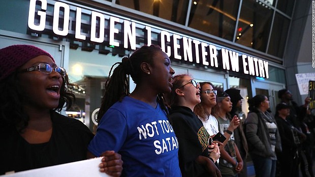 Protests erupted in Sacramento four days after Stephon Clark, an unarmed black man, was shot by police in his grandmother's backyard. Demonstrators blocked the entrance to an arena where an NBA game was scheduled Thursday, chanting "Black Lives Matter" and the name of the 22-year-old who was killed.