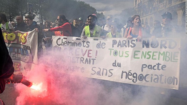More than 100 people remained in custody in Paris Wednesday after annual May Day protests turned violent, police said. A McDonald's restaurant was destroyed by protesters during the unrest. Photographs show extensive damage to the building, with protesters kicking in smashed windows. Footage also showed damage to a Renault car dealership, as well as other businesses.