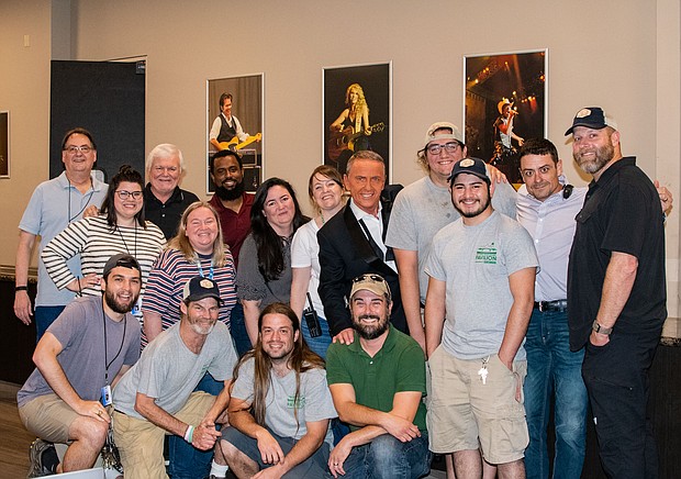 Staff members from The Pavilion pose with Bob Anderson, singer, actor and number one singing impressionist in the world, after his FRANK. The Man.