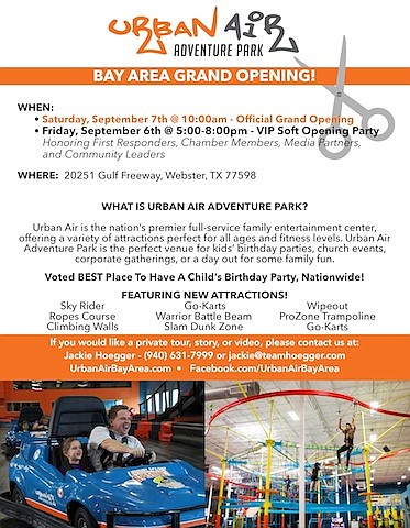 Urban Air Adventure Park is bringing premier family entertainment to your area for their Grand Opening Festivities this weekend! They are hosting a VIP Soft Opening event for local First Responders and Active Duty and Veteran Military Personnel. They can enjoy the park with their families for FREE this Friday, September 6th from 5-8pm and experience this magical night of giving back to the community with them.