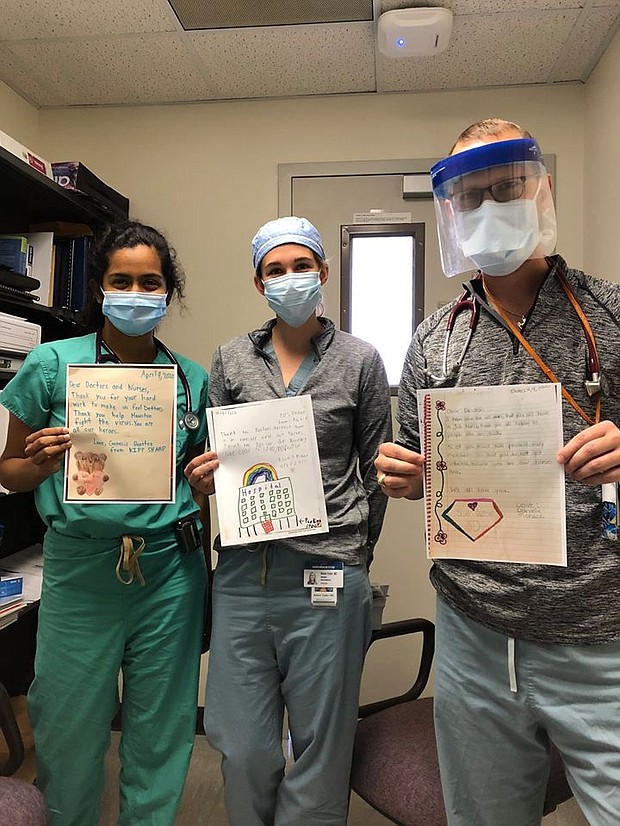 Second graders at KIPP SHARP wanted to spread some joy and positivity to our heath care workers. They wrote letters of appreciation to the hardworking doctors and nurses at LBJ Hospital. See pictures of the doctors and nurses with the students letters below.