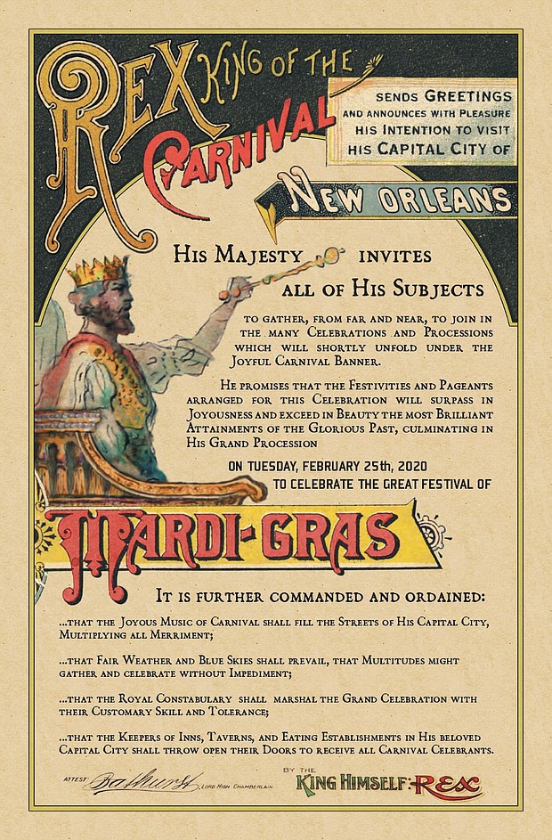 Rex, King of Carnival and the New Orleans Tourism Industry Issue Official Invitation to Mardi Gras