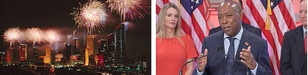 Houston Public Media reports Houstonians can view the fireworks live from nearby parks, but like last year, Mayor Sylvester Turner said the public will not be able to physically watch the live music acts downtown.