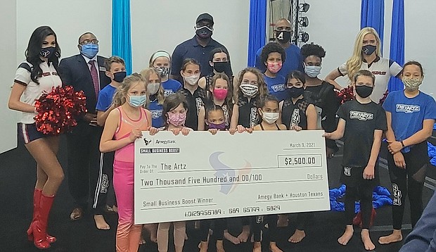 The Houston Texans organization was back out in the community with partner Amegy Bank on Tuesday awarding their first of eight 2021 Small Business Boost program packages. DeMarco Howard, owner of The Artz Studio located in The Heights received a $2,500 donation, marketing and promotional support from the Texans and Amegy Bank and an award plaque.