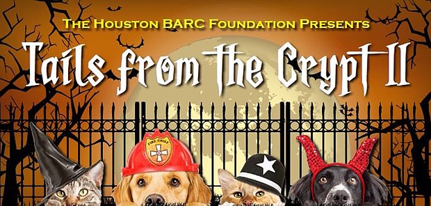 In support of BARC, the City of Houston's Animal Shelter and Adoption Center, the Houston BARC Foundation will host "Tails from the Crypt - A Howl-O-Ween Cocktail Party" from 6:30 - 9 p.m. on Thursday, October 28, 2021, at the Heights Fire Station,107 W 12th St, Houston, TX 77008.