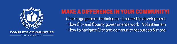 The Department of Neighborhoods (DON) invites Houston residents committed to making a positive impact in their communities to apply for Fall 2022 Complete Communities University (CCU) leadership training. The 8-week course will run September 21 – November 9. The classes will be held online via Microsoft Teams and in person on Wednesday evenings, 6-8:30 p.m. The application deadline is August 31, 2022.