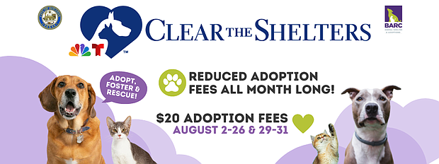 BARC, the City of Houston's Animal Shelter and Adoption Center, has joined NBCUniversal Local’s 2022 Clear The Shelters pet adoption and donation campaign, through August 31, 2022. As part of this year's campaign, BARC's Adoption Center will be open for additional hours from 10 a.m. to 5 p.m. on Saturday, August 27, 2022. All pet adoption fees will also be completely waived for the final weekend on August 27 and 28, 2022.