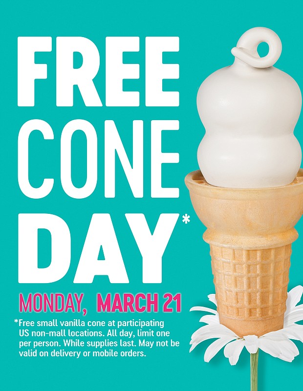It’s back! Free Cone Day* will return on Monday, March 21 at participating DQ restaurants in Texas celebrating the arrival of spring. Each fan will receive a free small cone with a limit of one per fan while supplies last.