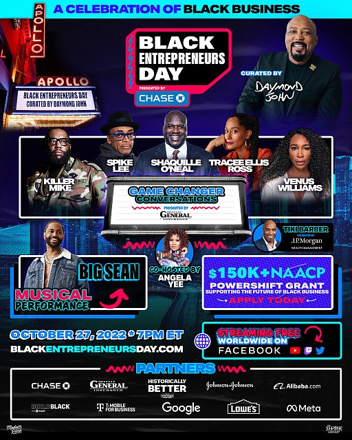 Black Entrepreneurs Day presented by Chase: A Celebration of Black Business Curated by Daymond John Streaming Live From the Apollo Theater, Thursday, Oct. 27