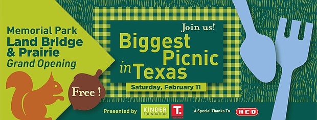Memorial Park Conservancy along with partners the City of Houston, Houston Parks and Recreation Department, Kinder Foundation and Uptown Houston invite Houstonians for a FREE event celebrating the official grand opening of Memorial Park’s transformational Land Bridge and Prairie project. The Biggest Picnic in Texas, presented by Kinder Foundation and Tellepsen, welcomes the community to experience this new 100-acre space.