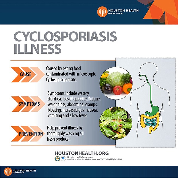 The Houston Health Department, Harris County Public Health (HCPH), and the Fort Bend Health & Human Services (FBCHHS) have received reports of an increased number of Cyclospora infections within their jurisdictions and urge people to use caution this summer while cooking and spending time outdoors.
