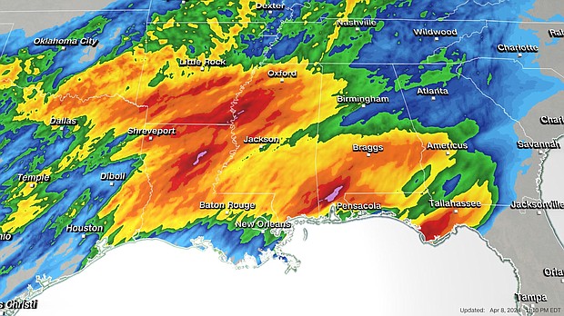 Severe storms threaten flooding/tornadoes/large hail in South/parts of Mississippi Valley today