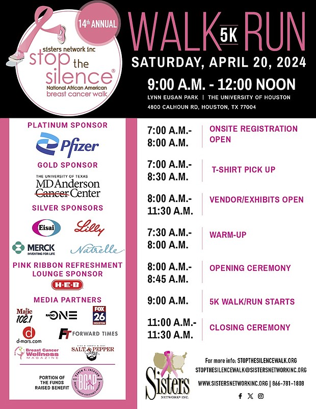 Sisters Network® Inc. hosts its 14th Annual Stop the Silence 5K Walk/Run in downtown Houston.