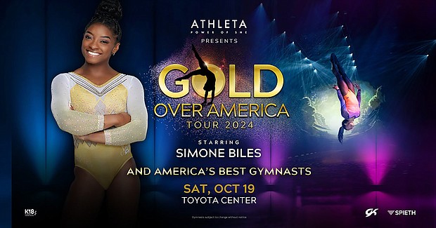 Houston, get ready to be inspired and amazed as the unparalleled Simone Biles brings her glittering Gold Over America Tour to our city this October! On Saturday, October 19, 2024, the Toyota Center in Houston will transform into a breathtaking arena of athletic prowess and artistic excellence, showcasing the brilliance of the world’s most decorated gymnast.