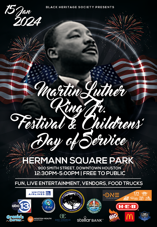 Attention residents of Houston, Texas, and the surrounding areas! The Black Heritage Society Inc. has partnered with the City of Houston to organize the 46th Annual "Original" MLK Parade. The parade will occur on Monday, January 15, 2024, at 10:00 am in Downtown Houston and is open to the Public. The parade will commence at the corner of Smith and McKinney in front of Houston's City Hall. This year's theme for the parade is "Brotherly Love is the Strongest Advocacy for Peace, Freedom, and Justice for All!"