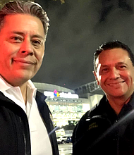 Ray Epps, in the red Trump hat, center, gestures to a line of law enforcement officers, as people gather on the West Front of the … Published on January 10, 2024 |